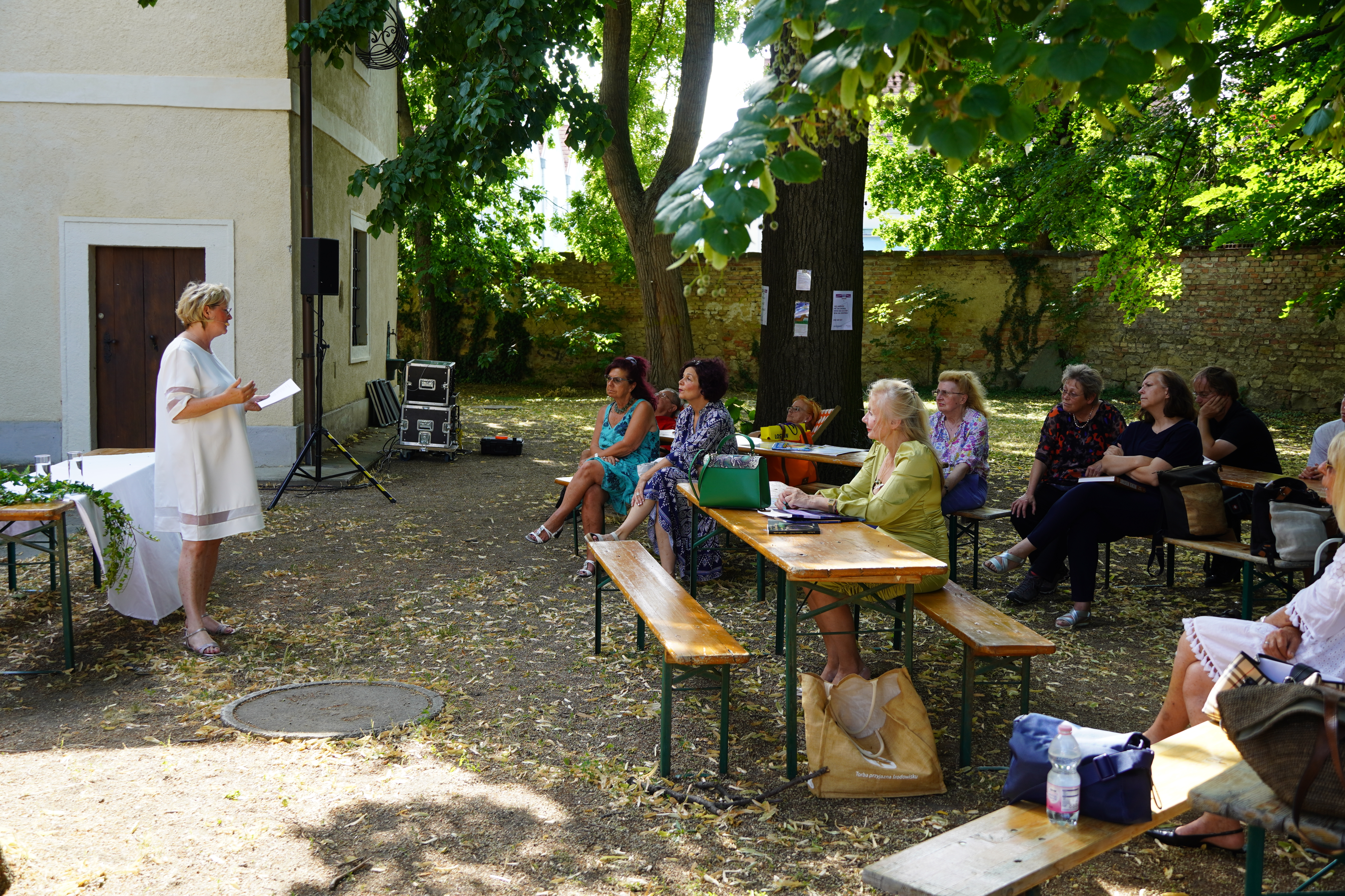 Eine unterhaltsame und spannende Lesung erwartet Sie unter den schattigen Bäumen des Kirchenplatzes.
